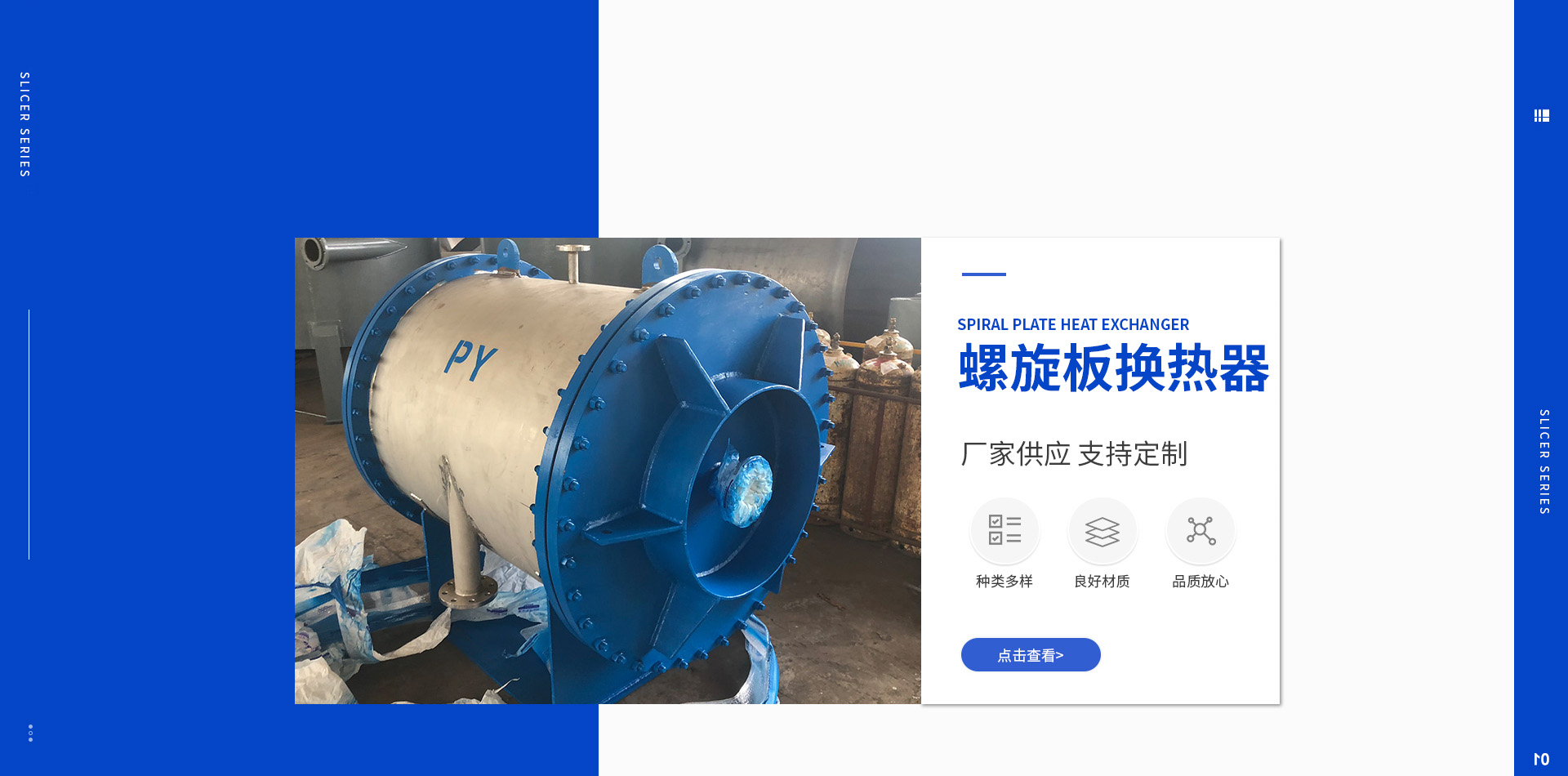 生產(chǎn)各類切片機(jī),螺旋板換熱器的專業(yè)公司可根據(jù)用戶要求進(jìn)行非標(biāo)準(zhǔn)設(shè)計(jì)和生產(chǎn)。